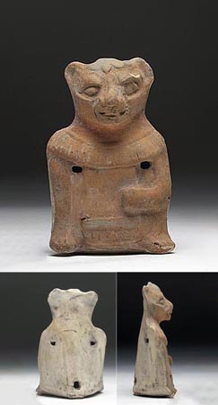 A Maya “Jaina” Jaguar Rattle of Pre-Columbian, Late Classic period, ca. 550-800 CE.  The term “Jaina” translates to “Temple in the Water.”  The Jaina Island is a pre-Columbian Maya archaeological site in the present-day Mexico state of Campeche.  This artificial limestone island on the Yucatan Peninsula’s Gulf coast served as an elite Maya burial site.